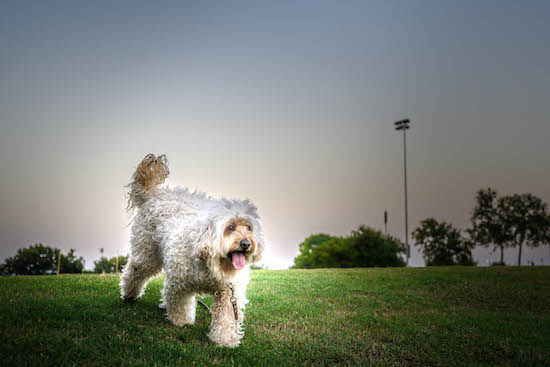 主人のリモートワークが終わり、夕食を済ませてから日の入りまでのお散歩です