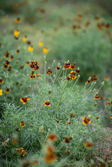 春のワイルドフラワーの株が枯れずに残っていたものに