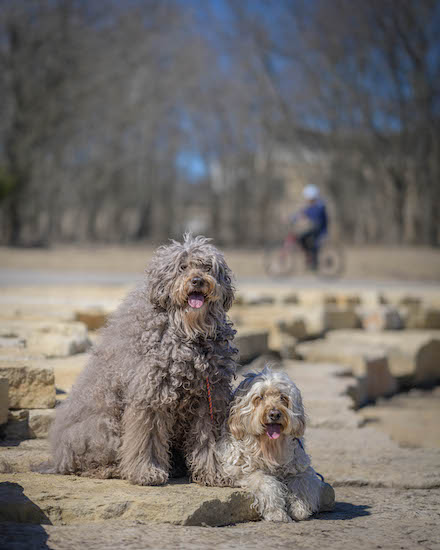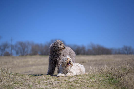 シャンプー前でブラッシングで毛玉取り途中のハイディと