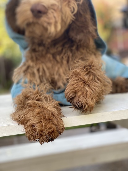 オーストラリアンラブラドゥードルは色の濃淡に幅があるので、やはり目鼻の色で判断ですね